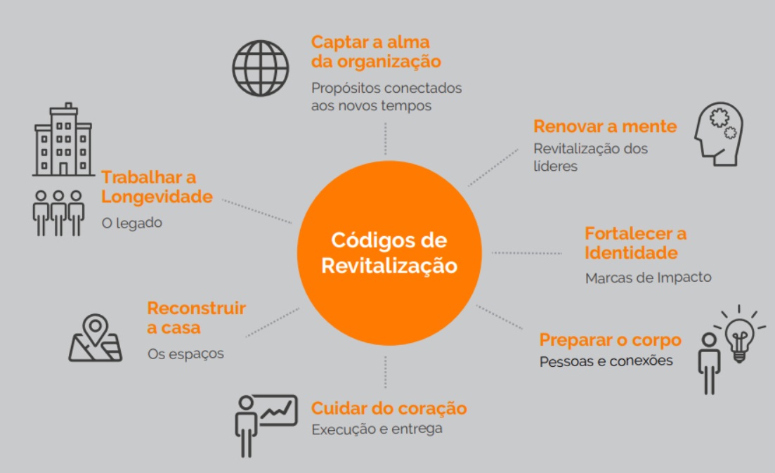 Em nossa experiência com laboratórios para “fertilização” de projetos conectados a esta desafiadora versão do mundo, criamos “Sete Códigos para Revitalização©” tecnológica, econômica, ambiental e social, atualizando o “software” organizacional para os novos tempos, na forma e no conteúdo. O pulsar cadenciado do coração organizacional bombeia o sangue vital de estratégias, investimentos e projetos que correm nos fluxos do corpo vivo institucional. O propósito, a marca e a mente alinhados garantem um negócio com um corpo saudável, com longevidade sustentável, impactos positivos, com imunidade elevada para tempos de pandemia e crises impensáveis. E o resultado econômico das companhias dependerá, cada vez mais, do tipo de impacto externo causado.